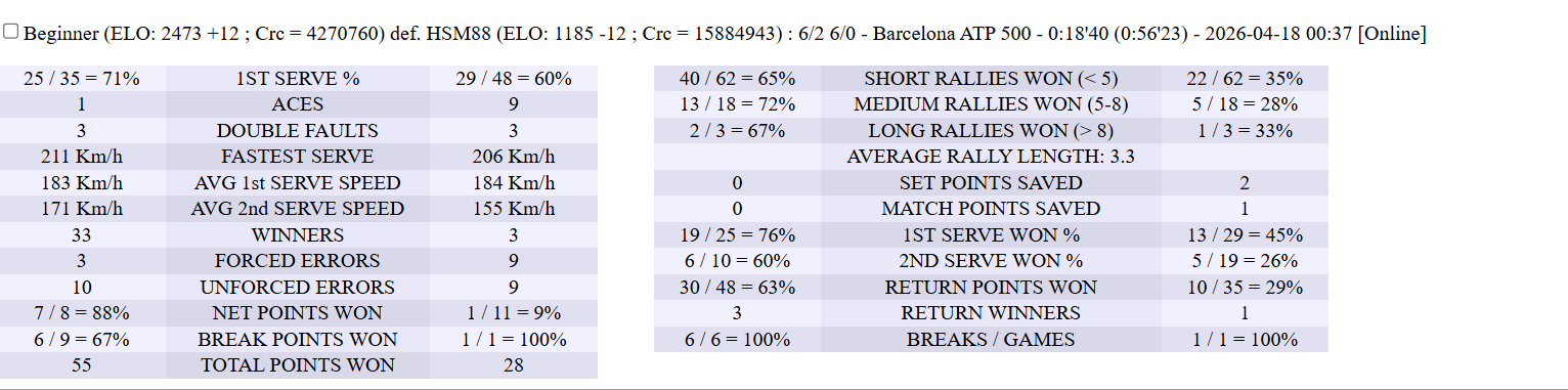 | 17.04.2026 | Round of 32 | fakefederer | TheTinkerman_ | 6-3,6-4 | |