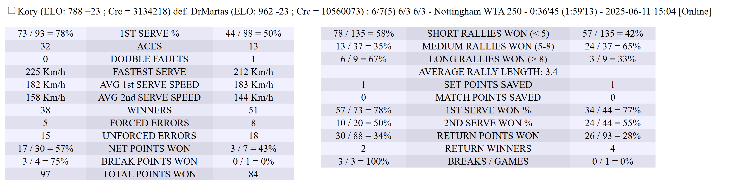 | 11.06.2025 | Round of 16 | Kory | DrMartas | 6-7,6-3,6-3 |
