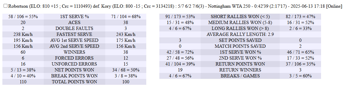 | 13.06.2025 | Semi-Final | Robertson | Kory | 5-7,6-2,7-6 | |