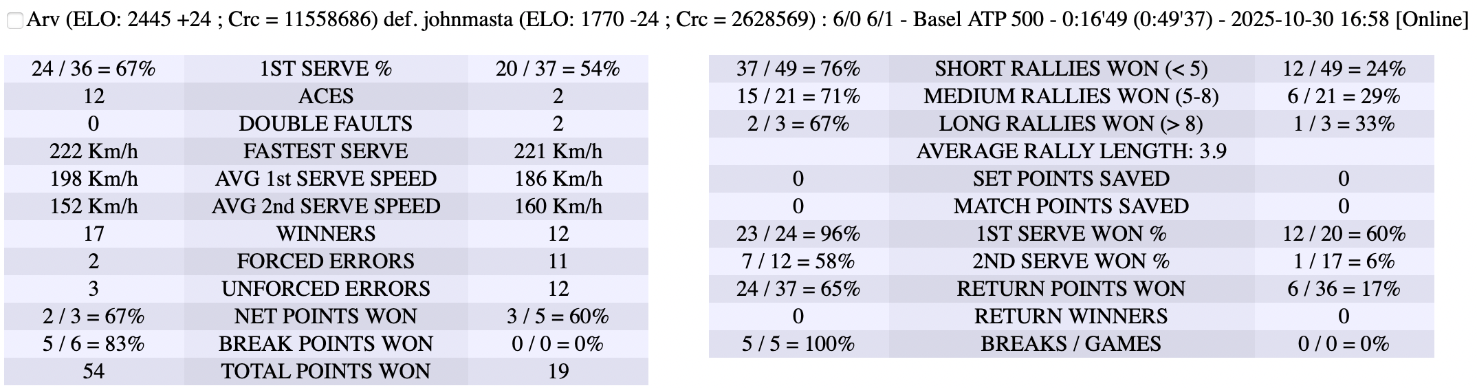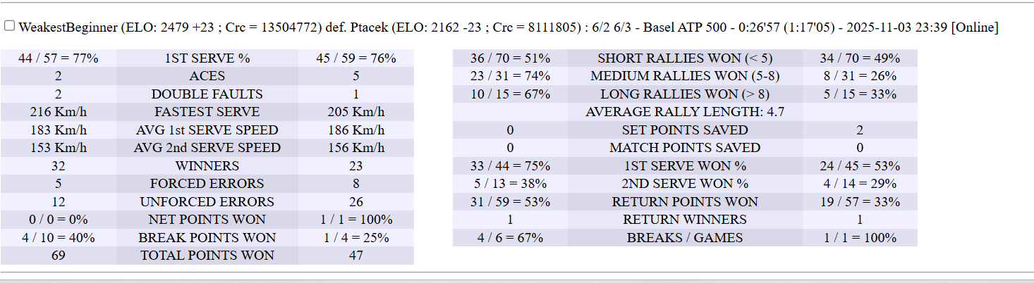 | 29.10.2025 | Round of 32 | fakefederer | mvkmatt4457 | 6-1,6-2 | |