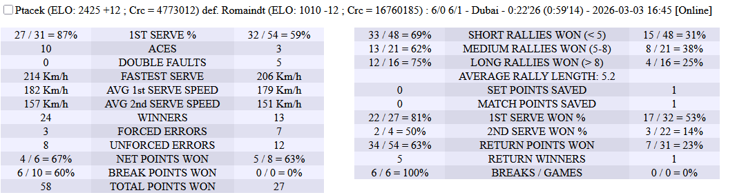03.03.2026 Round of 16 Ptacek RomainDT 6-0,6-1