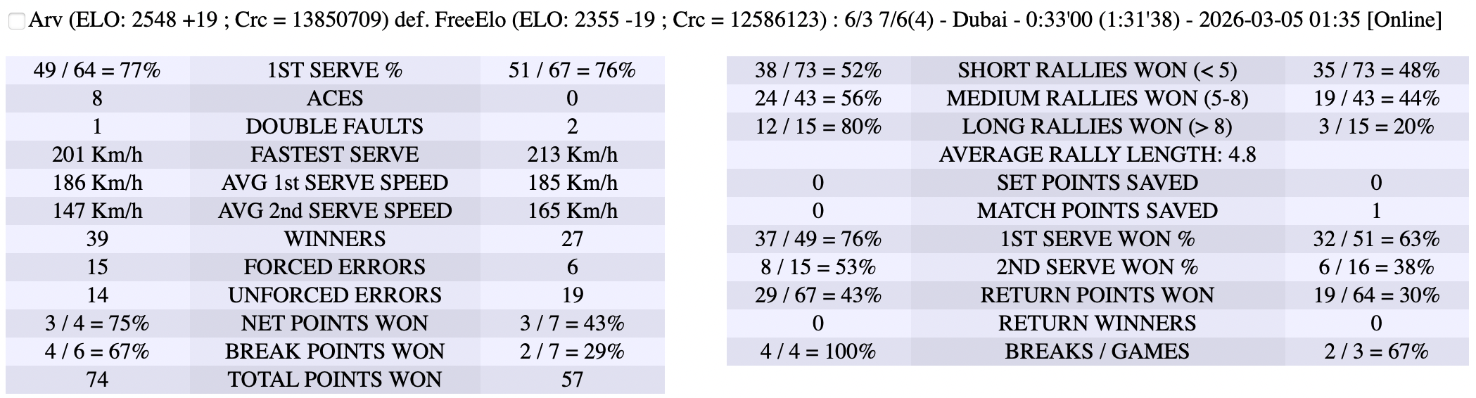05.03.2026 Quarter-Final Arv Unicah 6-3,7-6
