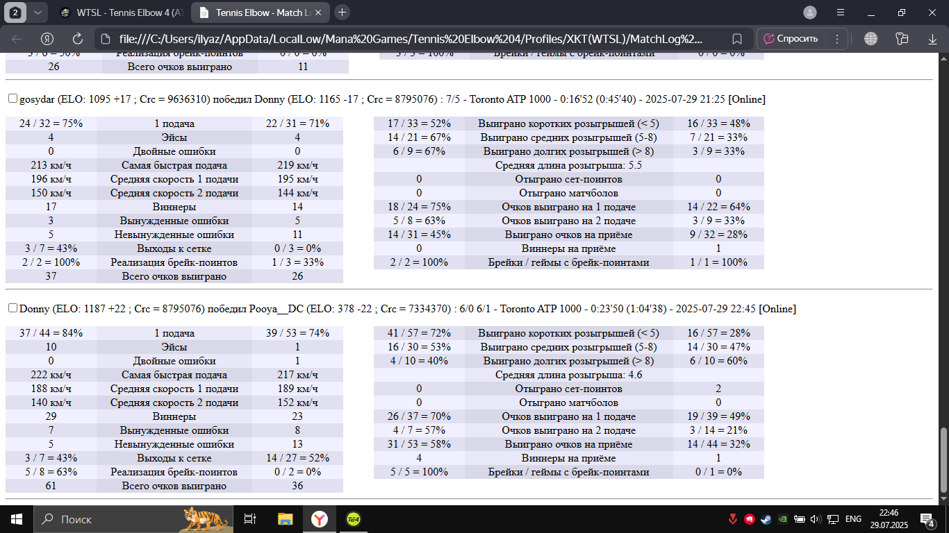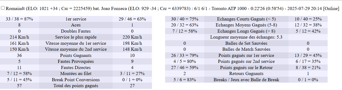 | 29.07.2025 | Round of 16 | RomainDT | albert | 6-1,6-1 | |