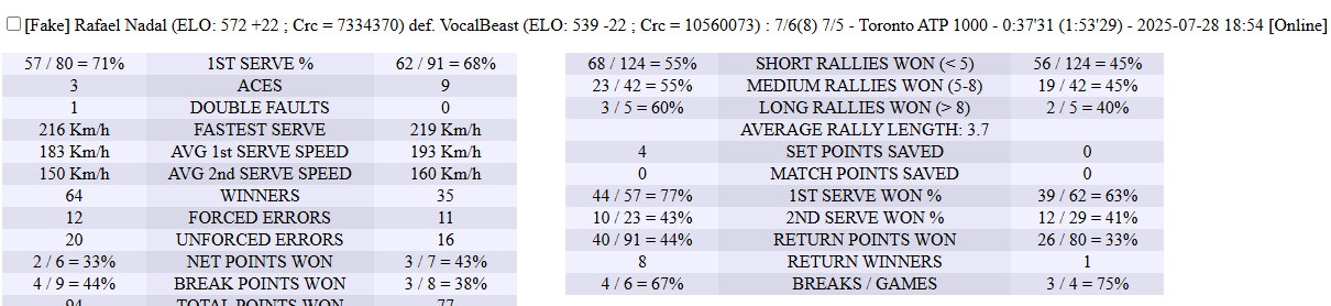| 29.07.2025 | Quarter-Final | mvkmatt4457 | Bongi | 6-3,6-1 | |