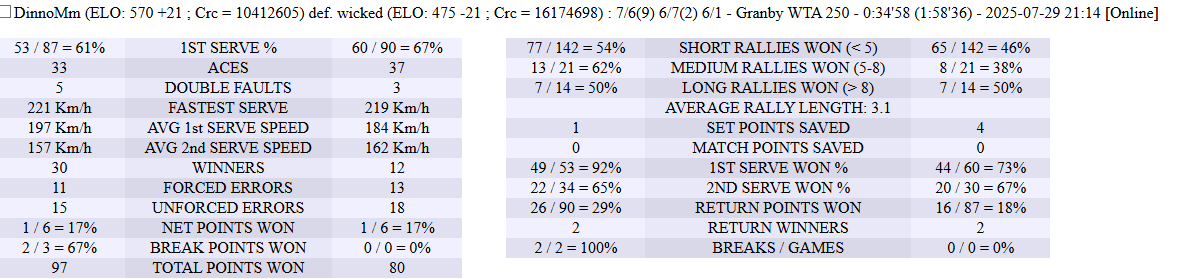 | 28.07.2025 | Round of 16 | CaptainCrazy | Christian 29 | 6-3,6-2 |