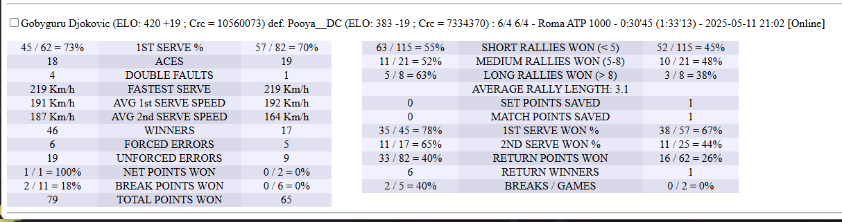 | 11.05.2025 | Quarter-Final | Gobyguru | Pooya_DC | 6-4,6-4 | |