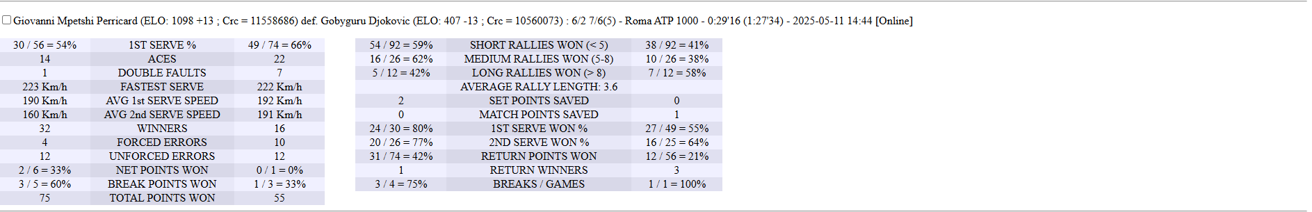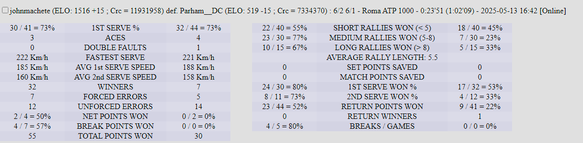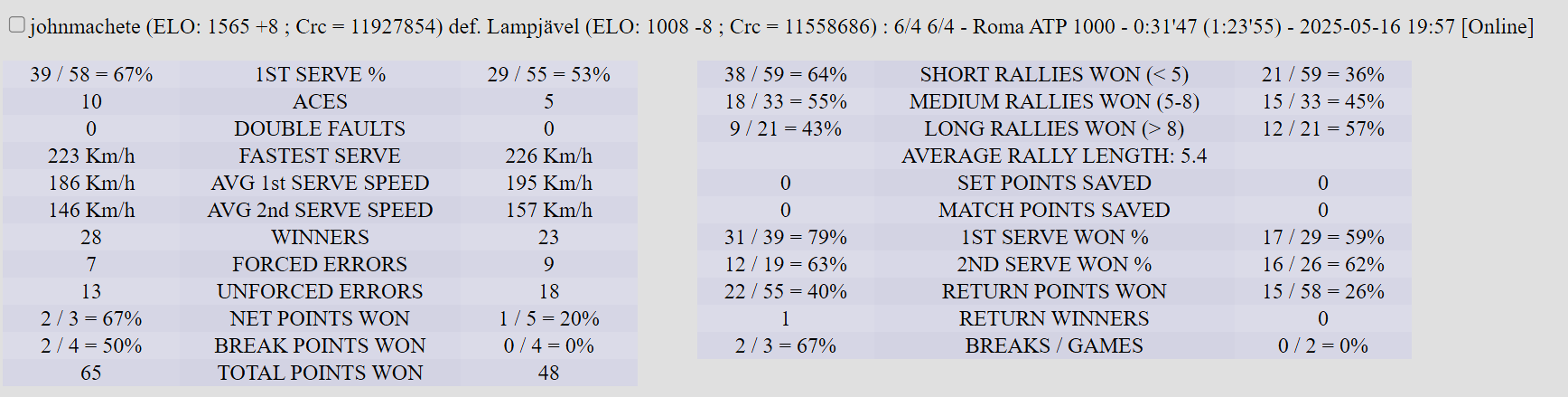 | 29.05.2025 | Round of 16 | Yobinho | mvkmatt4457 | 4-6,6-3,6-2 |