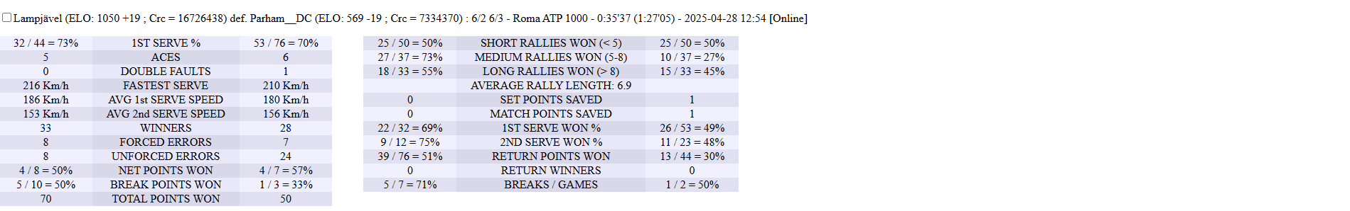 28.04.2025 Quarter-Final Lampjavel Parham 6-2,6-3
