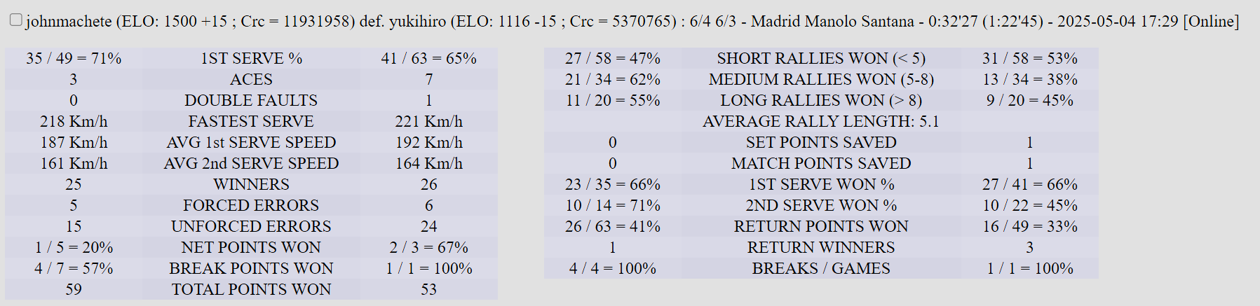 04.05.2025 Semi-Final Franky Franchicha Yukihiro 6-4,6-3