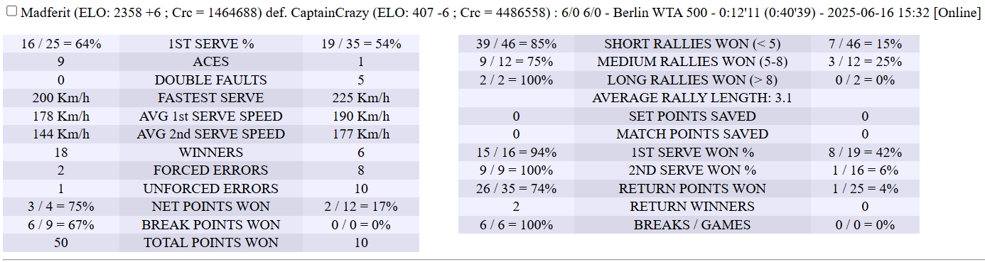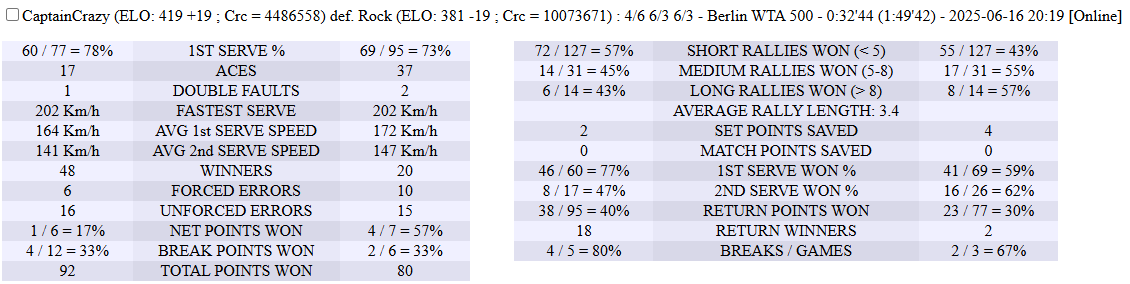| 16.06.2025 | Round of 16 | CaptainCrazy | Rock | 4-6,6-3,6-3 |