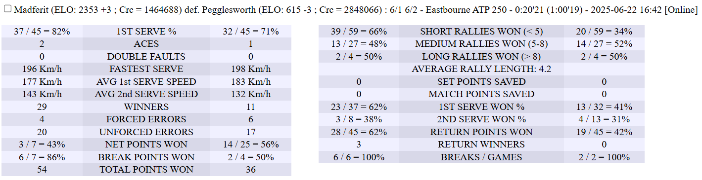 | 19.06.2025 | Round of 16 | Wivincy | LucasMendes | Walkover | |