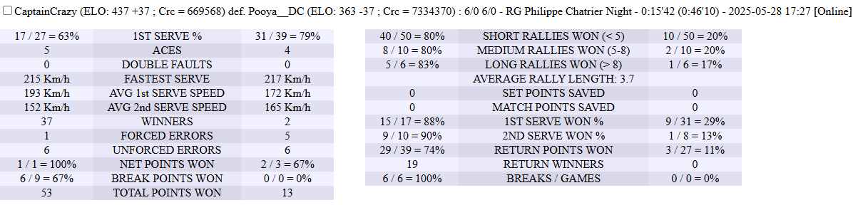 | 28.05.2025 | Round of 16 | CaptainCrazy | Pooya_DC | 6-0,6-0 | |
