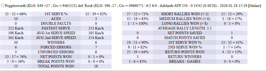 | 19.01.2026 | Round of 32 | Angelo | THE_GREEN_CRACK | 6-3,6-4 | |
