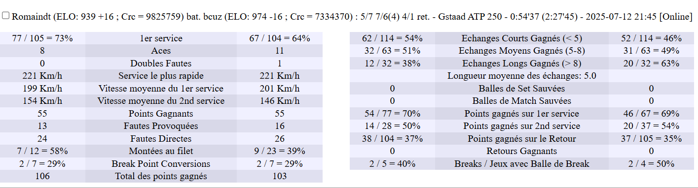 | 12.07.2025 | Round of 16 | RomainDT | bcuz | 5-7,7-6,4-1 |
