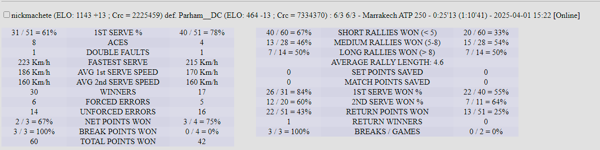 | 01.04.2025 | Quarter-Final | mareasdf | Franky Franchicha | 6-3,6-4 | |