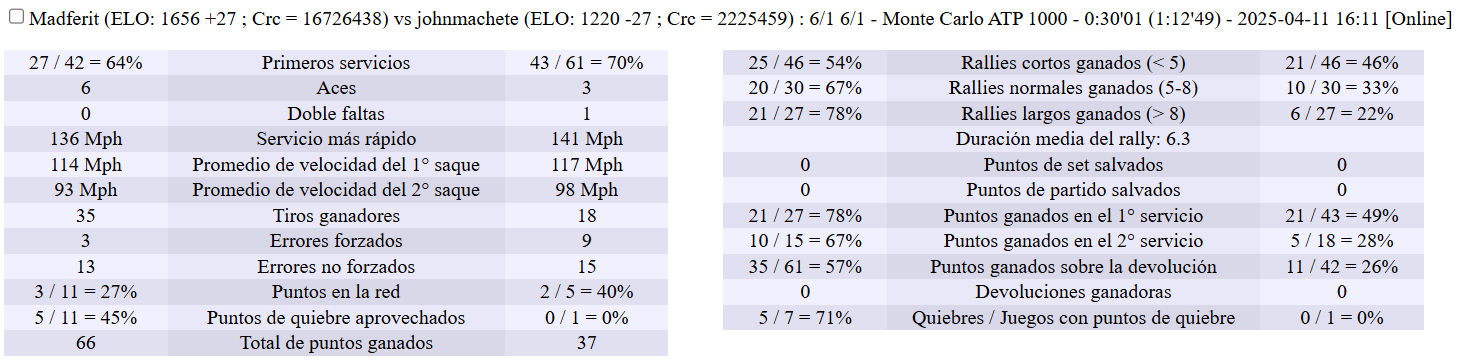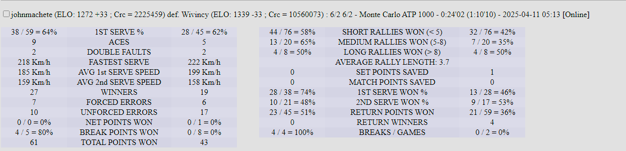 | 10.04.2025 | Round of 32 | JorgeCas567 | bcuz | 6-1,6-1 | |