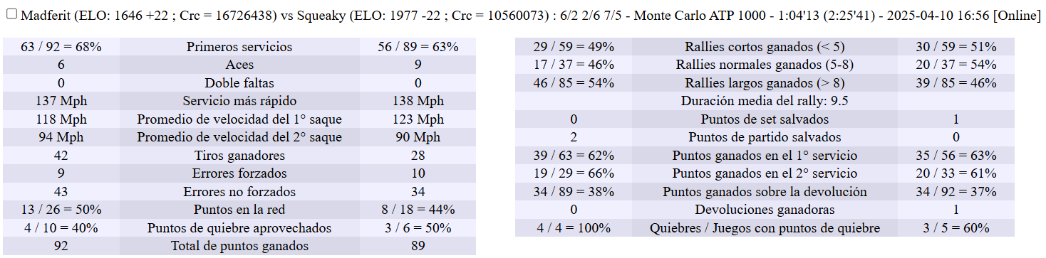 | 10.04.2025 | Round of 32 | Madferit | Squeaky | 6-2,2-6,7-5 | |