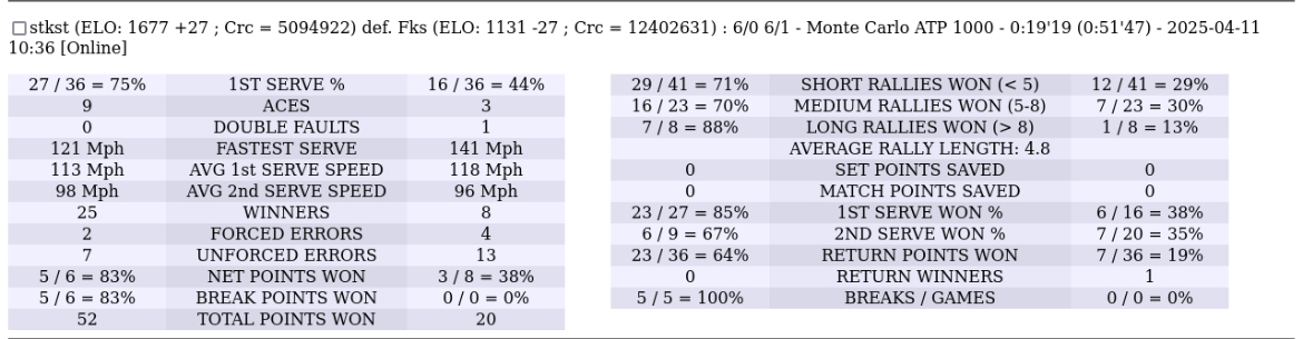 | 10.04.2025 | Round of 32 | alnicozu | jsilv1 | 7-5,6-1 | |