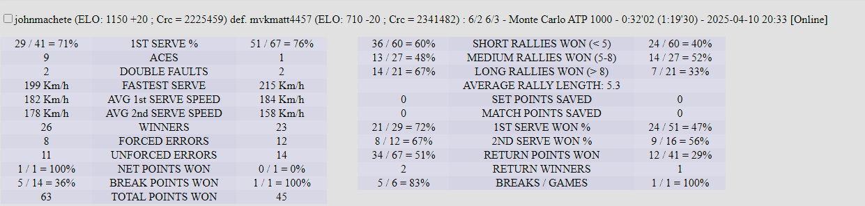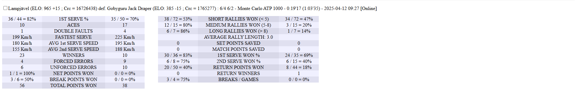| 10.04.2025 | Round of 16 | Franky Franchicha | mvkmatt4457 | 6-2,6-3 | |