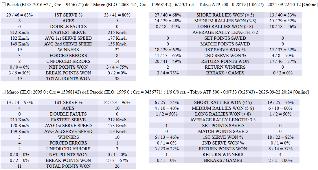23.09.2025 Quarter-Final Ptacek Franky Franchicha 4-6,6-3,7-6