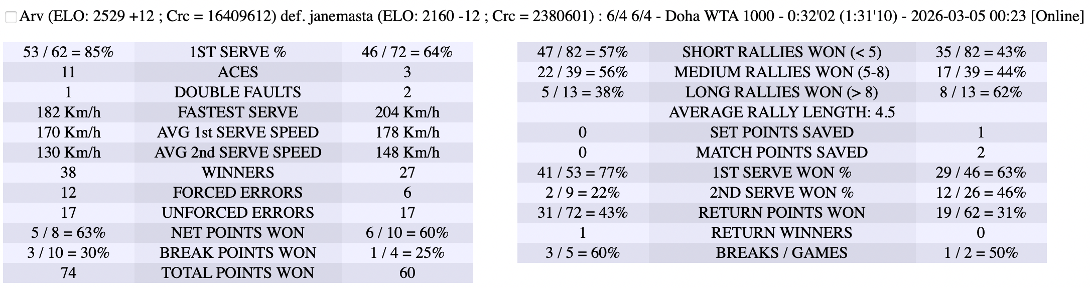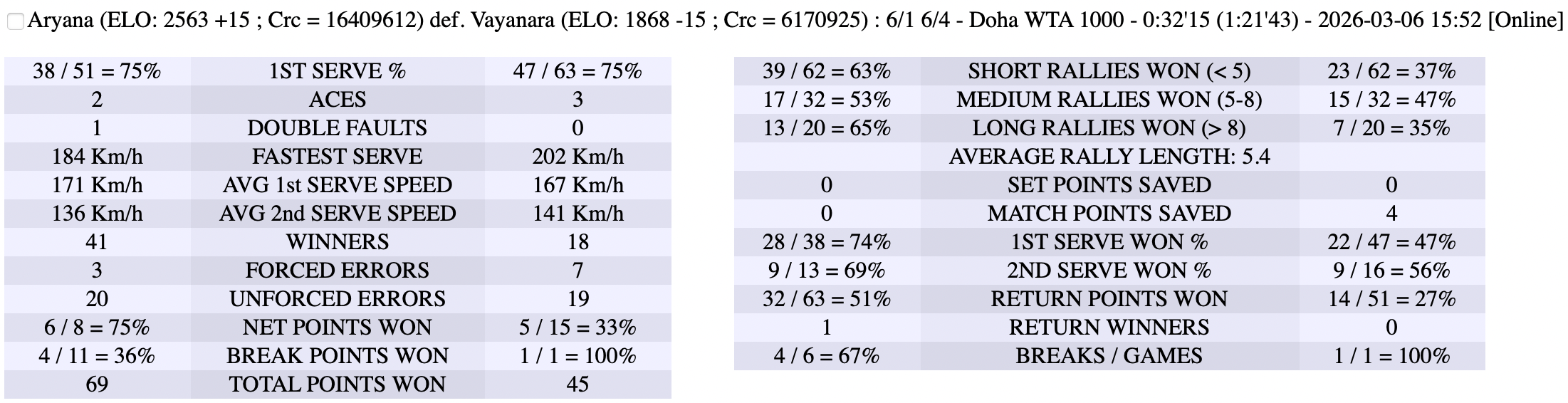 | 05.03.2026 | Losers Final | Vayanara | janemasta | 6-2,3-6,6-4 | |