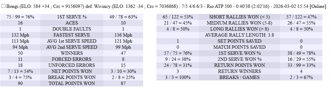 27.02.2026 Quarter-Final Bongi taHleS 6-2,7-6