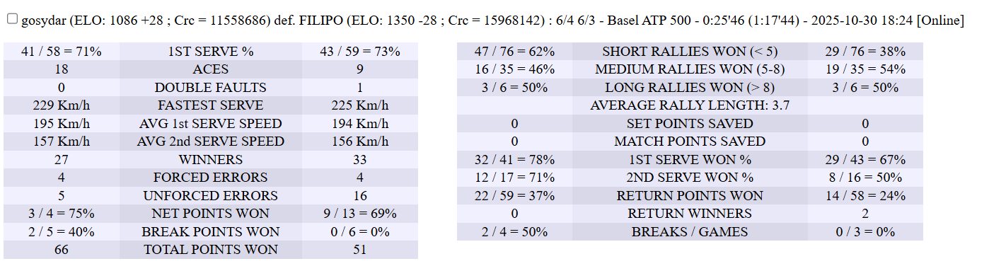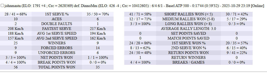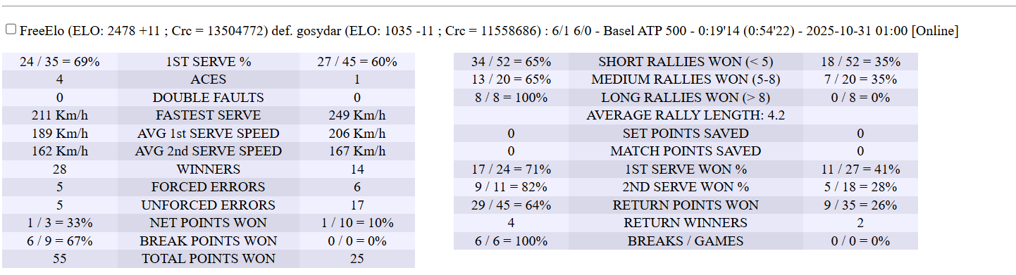 | 29.10.2025 | Round of 32 | fakefederer | mvkmatt4457 | 6-1,6-2 | |