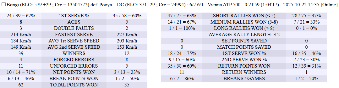 | 23.10.2025 | Quarter-Final | Bongi | Pooya_DC | 6-2,6-1 | |