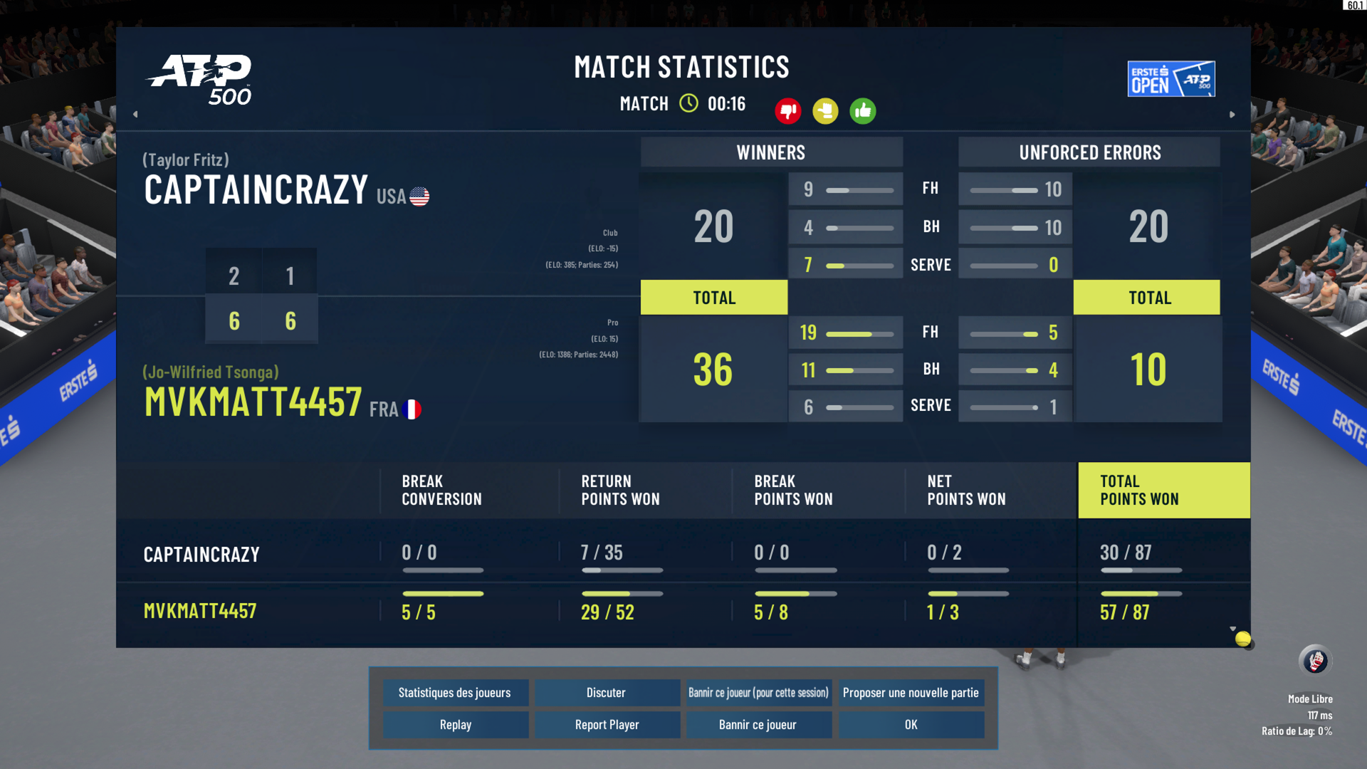| 20.10.2025 | Quarter-Final | mvkmatt4457 | CaptainCrazy | 6-2,6-1 |
