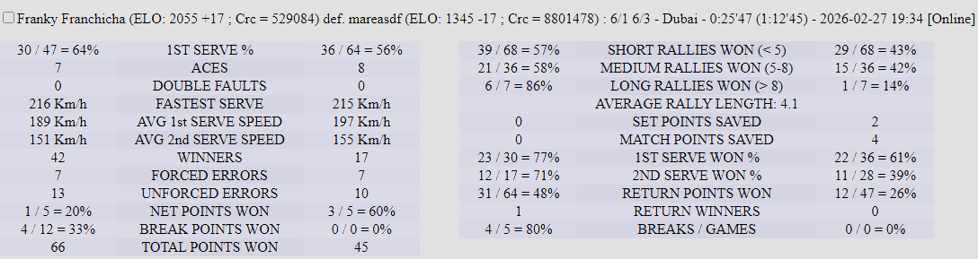 | 27.02.2026 | Round of 32 | Franky Franchicha | mareasdf | 6-1,6-3 |