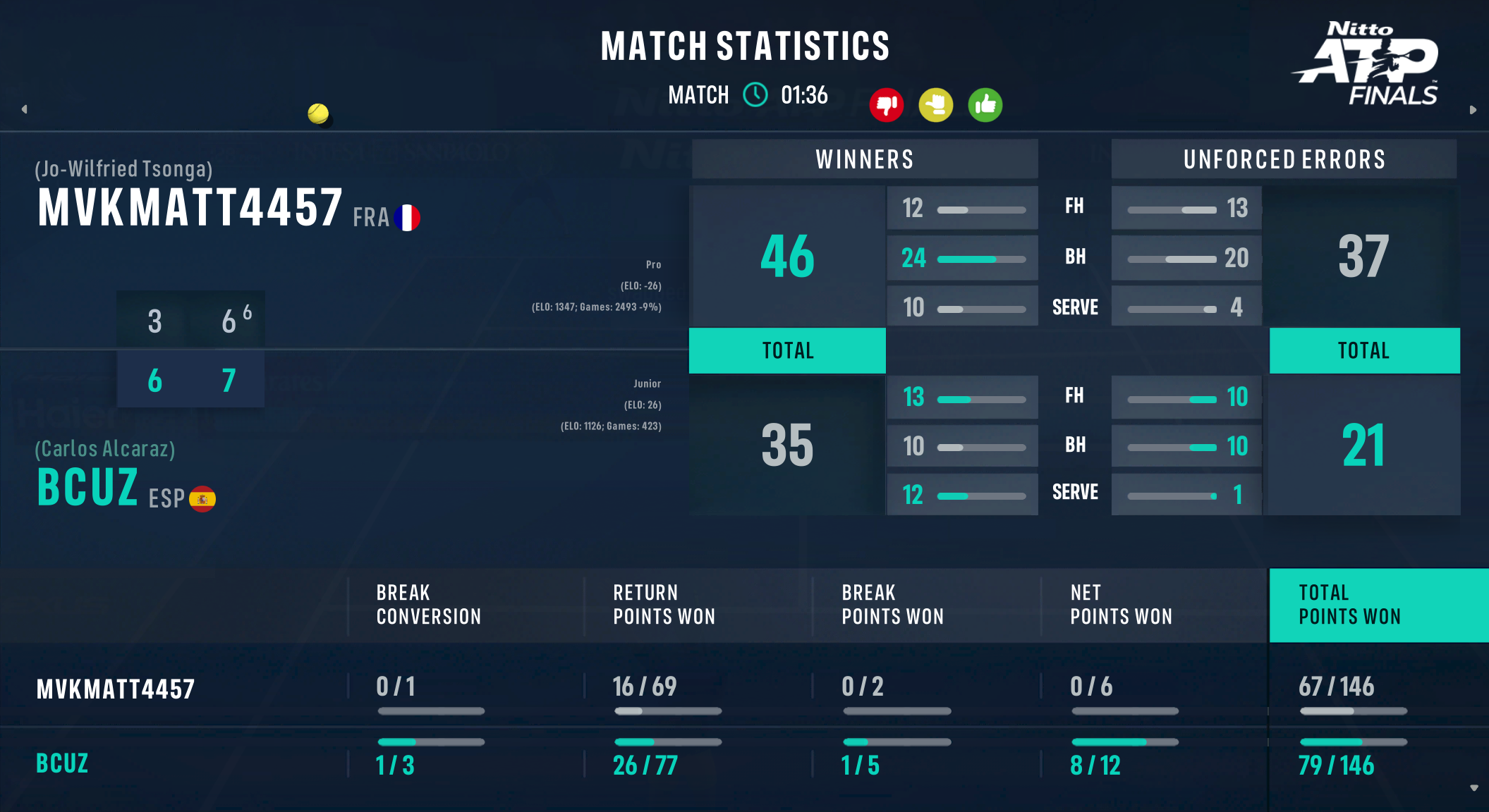 | 08.11.2025 | Semi-Final | bcuz | mvkmatt4457 | 6-3,7-6 | |