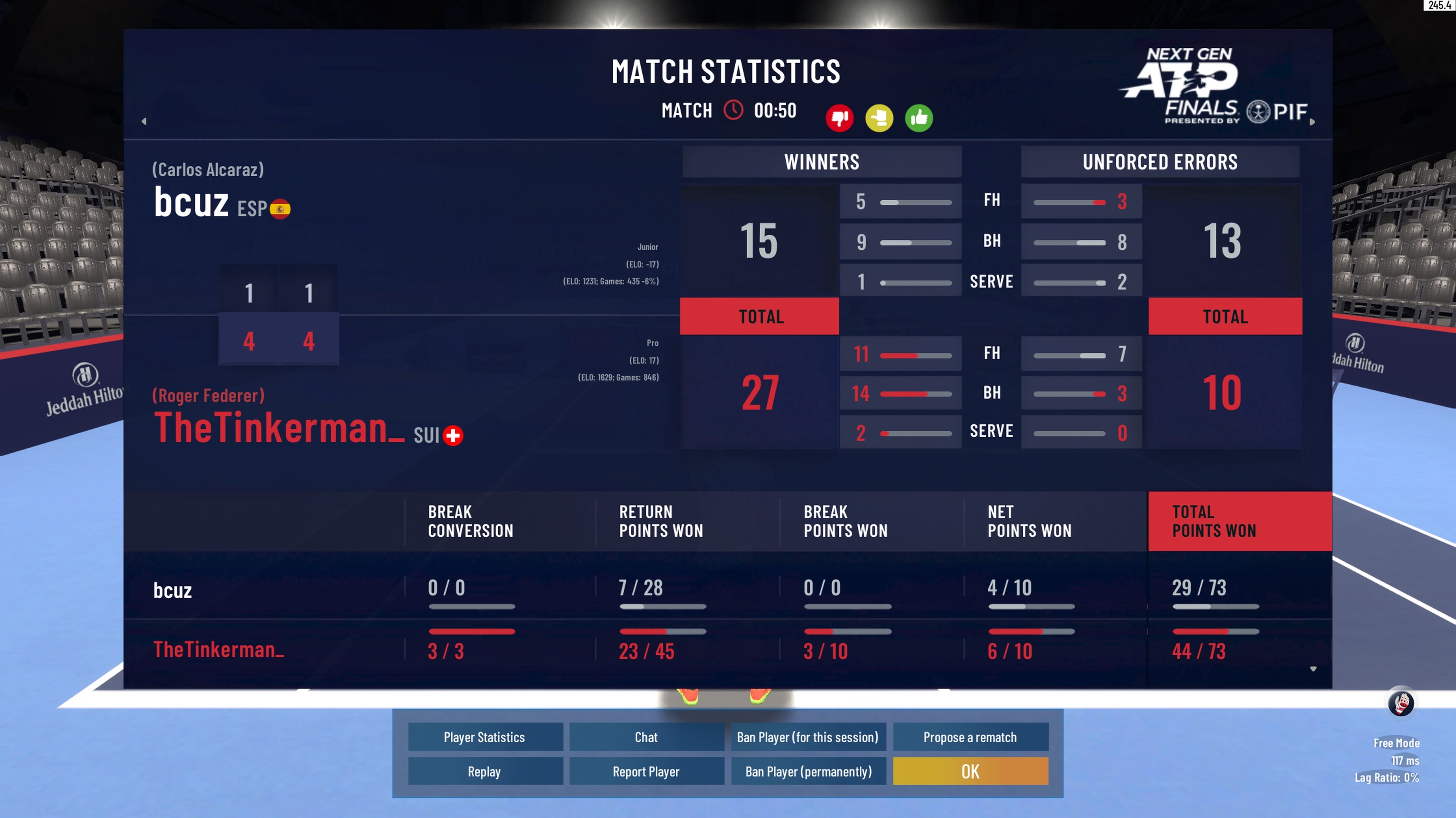 | 08.11.2025 | Round 2 | fakefederer | Ambience | 4-1,1-4,4-0 | |