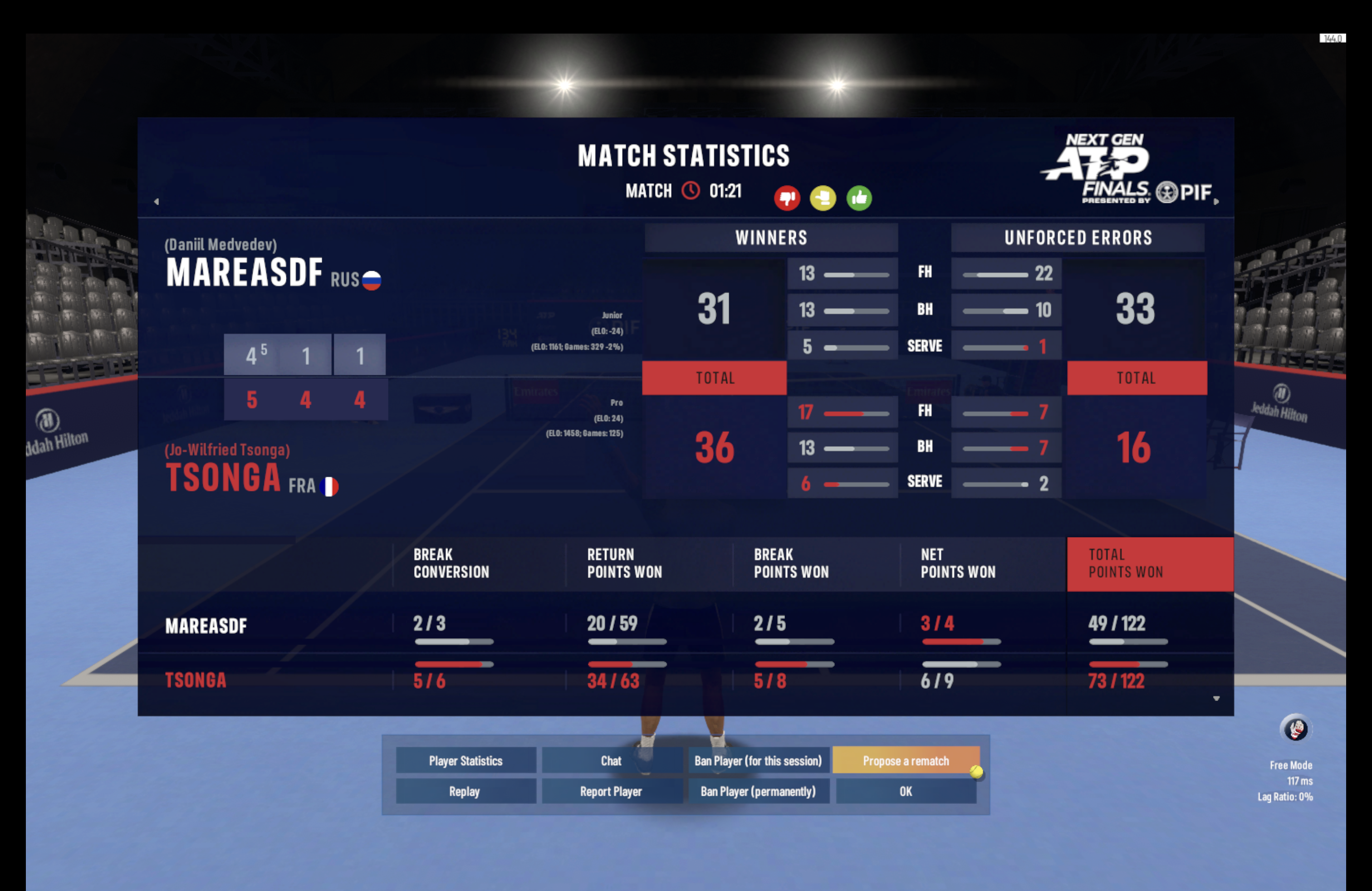 | 21.11.2025 | Round Robin | fakefederer | Vaya | 2-4,4-1,1-4,4-2,4-1 | |