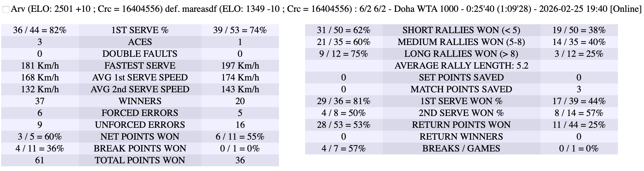 | 27.02.2026 | Round of 16 | Aryana | mareasdf | 6-2,6-2 | |