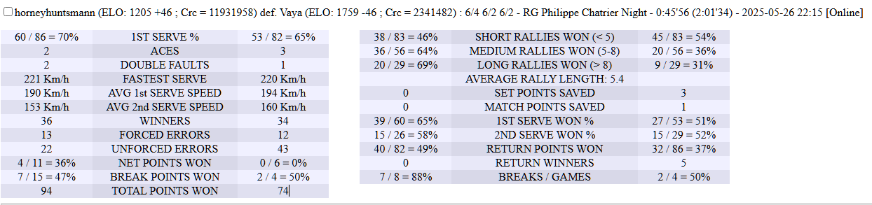 26.05.2025 Round of 64 horneyhuntsmann Vaya 6-4,6-2,6-2
