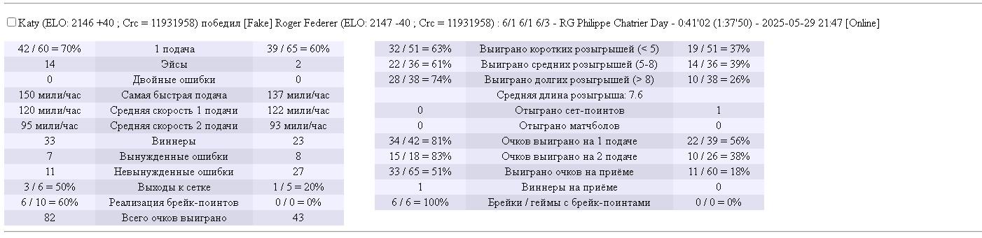 29.05.2025 Round of 32 Katy fakefederer 6-1,6-1,6-3