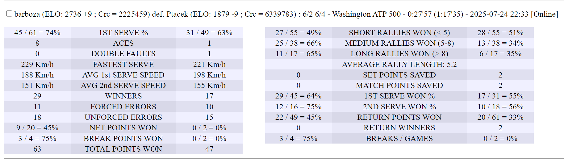 24.07.2025 Quarter-Final GOATBARBOZA Ptacek 6-2,6-4