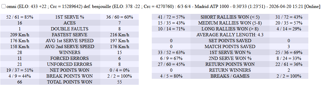 | 20.04.2026 | Quarter-Final | omni | benjouille | 6-3,6-4 | |